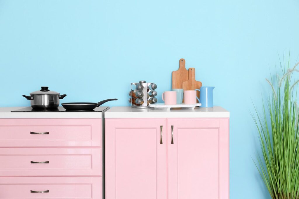 Kuchnie utrzymane w kolorze niebieskim oraz różowym mają zupełnie inne właściwości niż wymienione już barwy. Przede wszystkim należy zaznaczyć, że są one chłodniejsze. Ciemniejsze odcienie błękitnego oraz różowego tłumią apetyt, jak również działają motywująco, pobudzają do działania oraz nadają świeżości wnętrzu. Pomysł na aranżację kuchni w tych barwach proponowany jest przede wszystkim tym, którzy kwestię gotowania zrzucają na dalszy plan. Jest to także doskonałe rozwiązanie dla tych osób, które, urządzając swój segment pod Warszawą, zdecydowały się na połączenie kuchni razem z salonem, gdzie zdarza się im pracować np. przy komputerze.