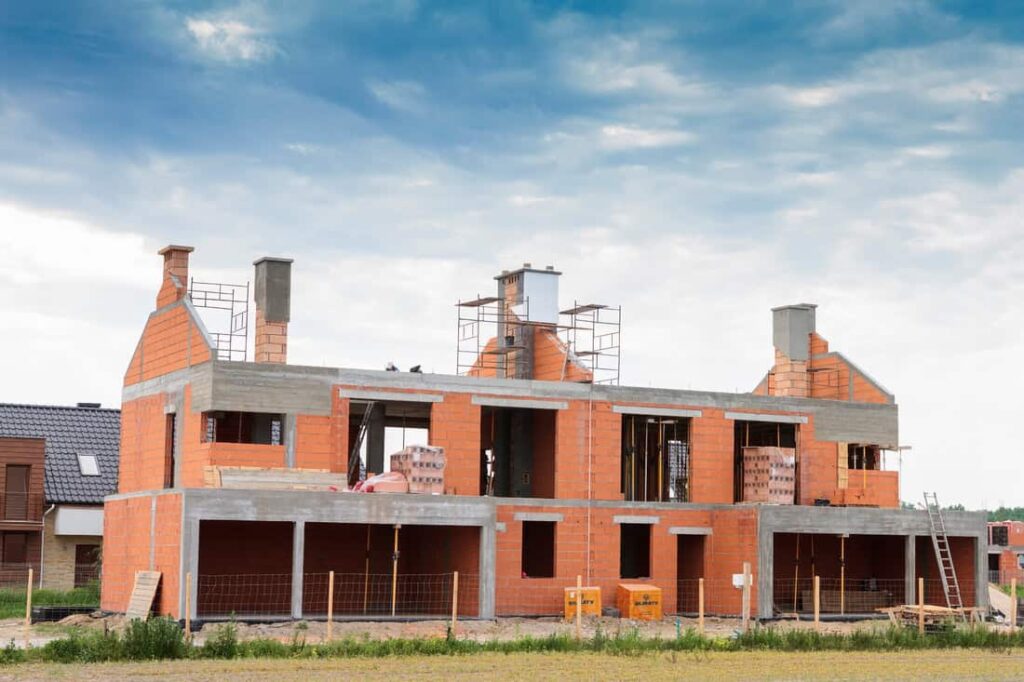 Apartamenty Przy Lesie – kończymy budowę drugiej kondygnacji Trwają prace murowe część budynków ma zakończone ściany drugiej kondygnacji.